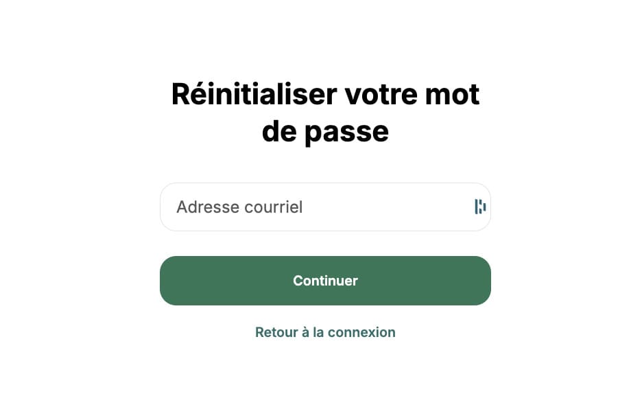 Sur la page d’accueil de Munia, cliquez sur « Mot de passe oublié », entrez votre adresse courriel, puis consultez le courriel intitulé « Demande de réinitialisation de mot de passe ». Cliquez sur « Réinitialiser mot de passe » et saisissez votre nouveau mot de passe.