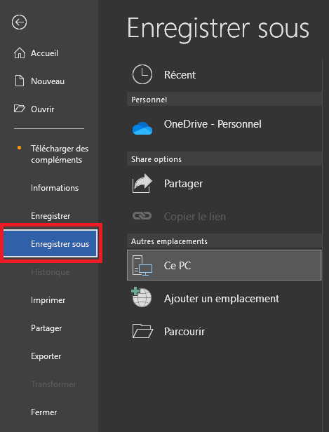 Étape 1 : Accéder à la fonction « Enregistrer sous » dans Word, Excel ou PowerPoint